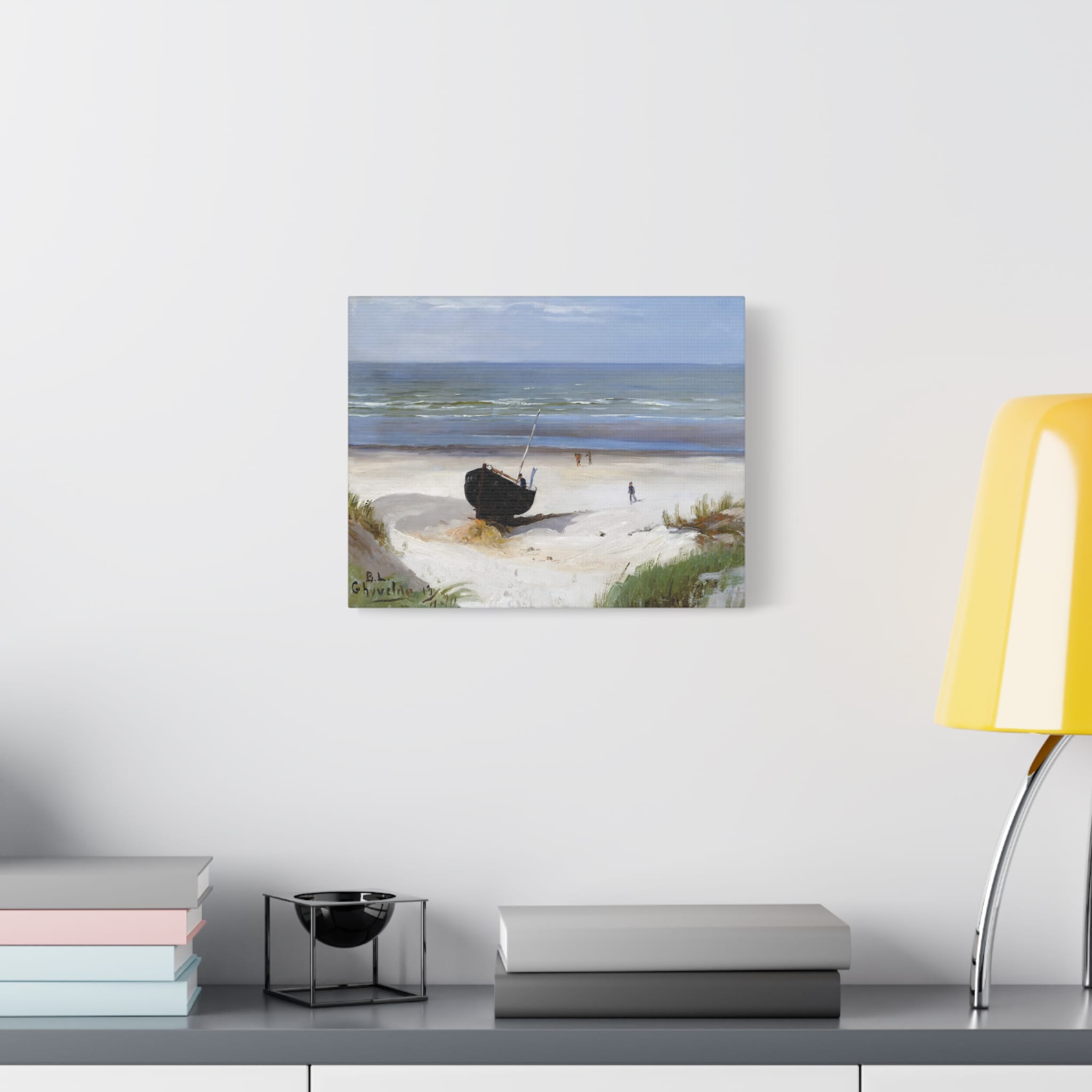 Experience the tranquil beauty of the Nordic coast with Berndt Lindholm’s “Boat on the Shore” (also known as “On the Shore”). Painted in 1877, this exquisite oil on canvas piece measures 38 x 53 cm and captures a serene coastal scene with boats resting peacefully on the shore. Lindholm, a celebrated Finnish landscape painter, was known for his association with the Düsseldorf School and his early Impressionist influences. His mastery in depicting natural light and tranquil settings is beautifully showcased in this artwork. Add a touch of Nordic elegance to your space with this timeless piece.
