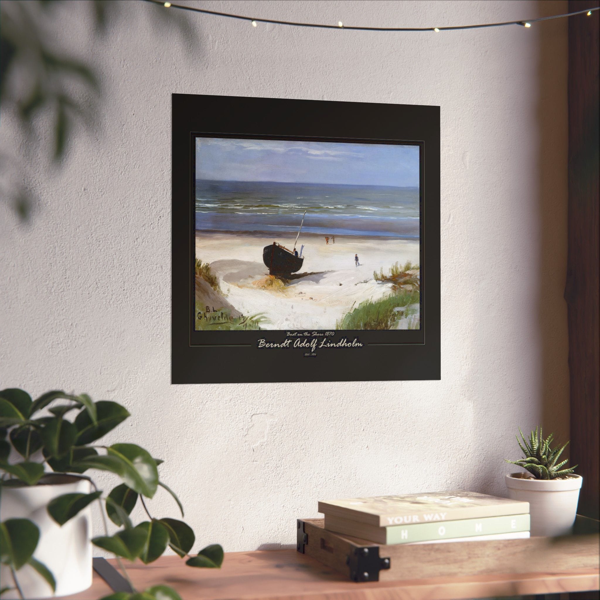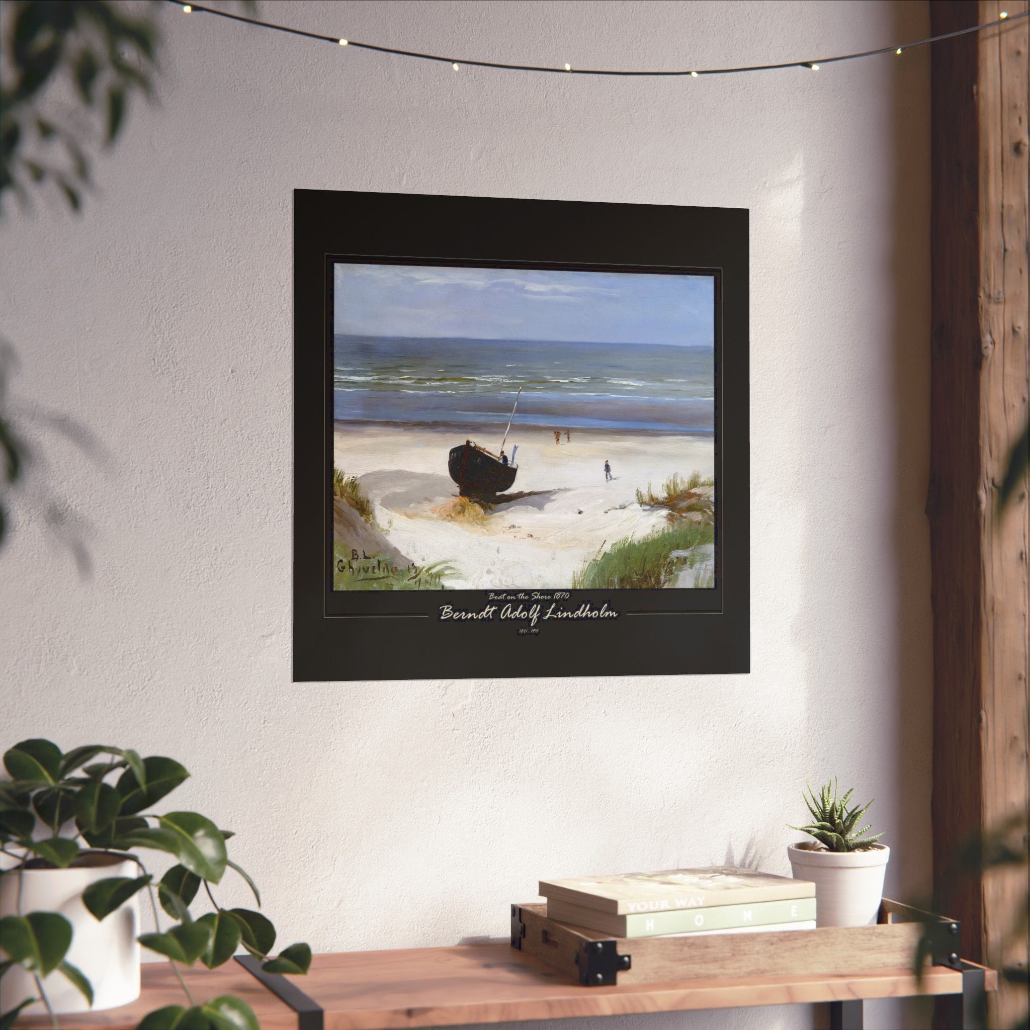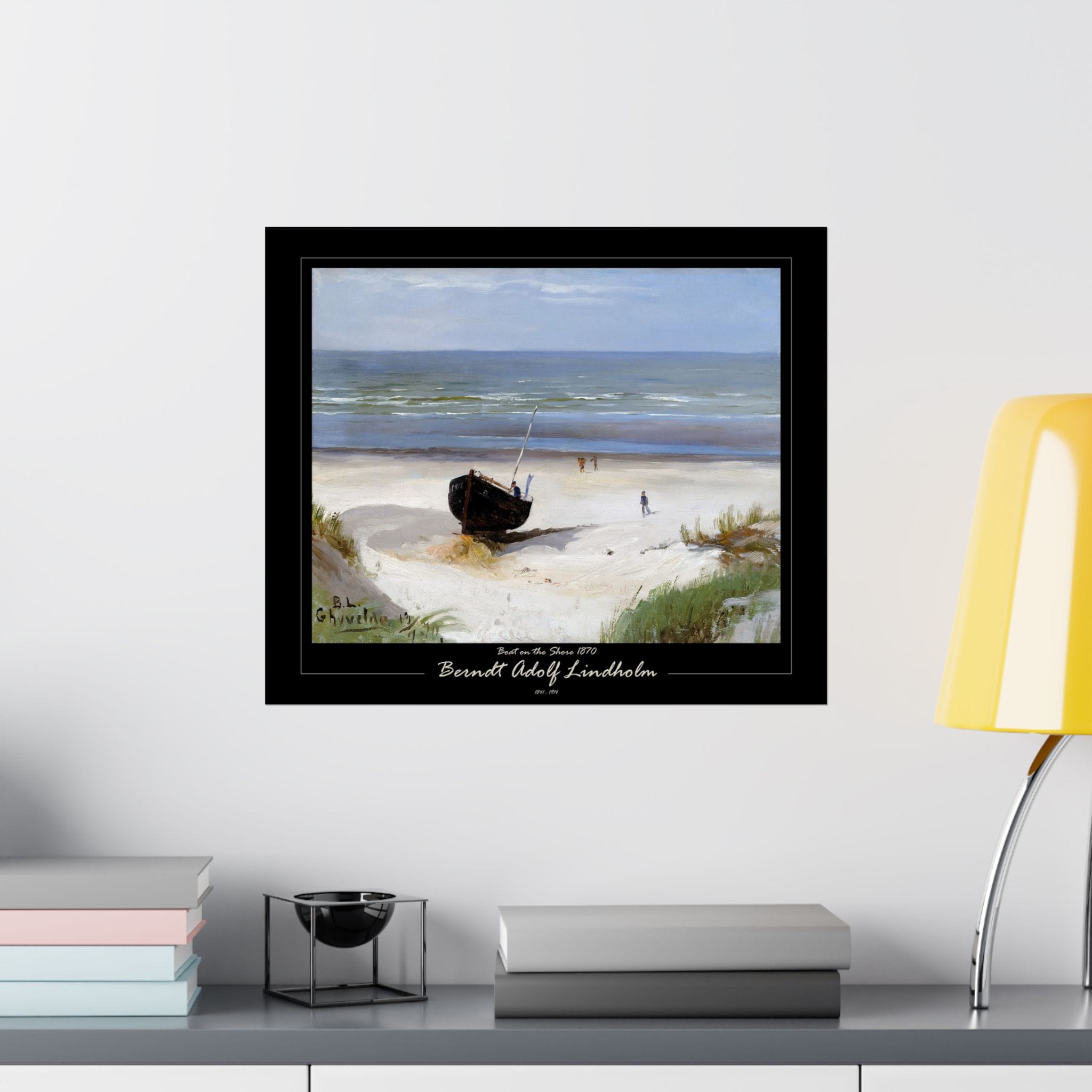 Experience the tranquil beauty of the Nordic coast with Berndt Lindholm’s “Boat on the Shore” (also known as “On the Shore”). Painted in 1877, this exquisite oil on canvas piece measures 38 x 53 cm and captures a serene coastal scene with boats resting peacefully on the shore. Lindholm, a celebrated Finnish landscape painter, was known for his association with the Düsseldorf School and his early Impressionist influences. His mastery in depicting natural light and tranquil settings is beautifully showcased in this artwork. Add a touch of Nordic elegance to your space with this timeless piece. Enhance your space with Morgan’s Vyntage Impressions wall art posters – where quality meets creativity with art from the past, quality for the future, and where masterpieces are reimagined. Order yours today and let your walls tell a very unique story!
