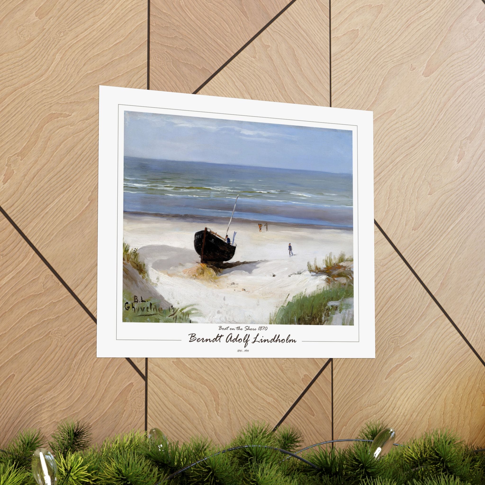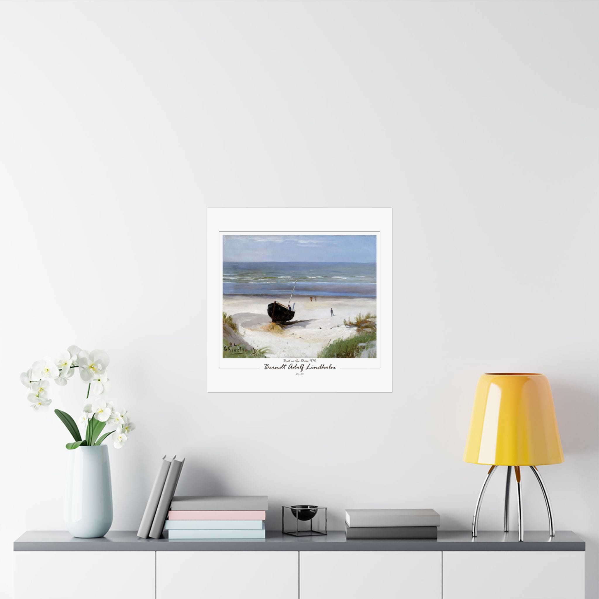 Experience the tranquil beauty of the Nordic coast with Berndt Lindholm’s “Boat on the Shore” (also known as “On the Shore”). Painted in 1877, this exquisite oil on canvas piece measures 38 x 53 cm and captures a serene coastal scene of a boat resting peacefully on the shore. Lindholm, a celebrated Finnish landscape painter, was known for his association with the Düsseldorf School and his early Impressionist influences. His mastery in depicting natural light and tranquil settings is beautifully showcased in this artwork. Add a touch of Nordic elegance to your space with this timeless piece. Enhance your space with Morgan’s Vyntage Impressions wall art posters – where quality meets creativity with art from the past, quality for the future, and where masterpieces are reimagined. Order yours today and let your walls tell a very unique story!