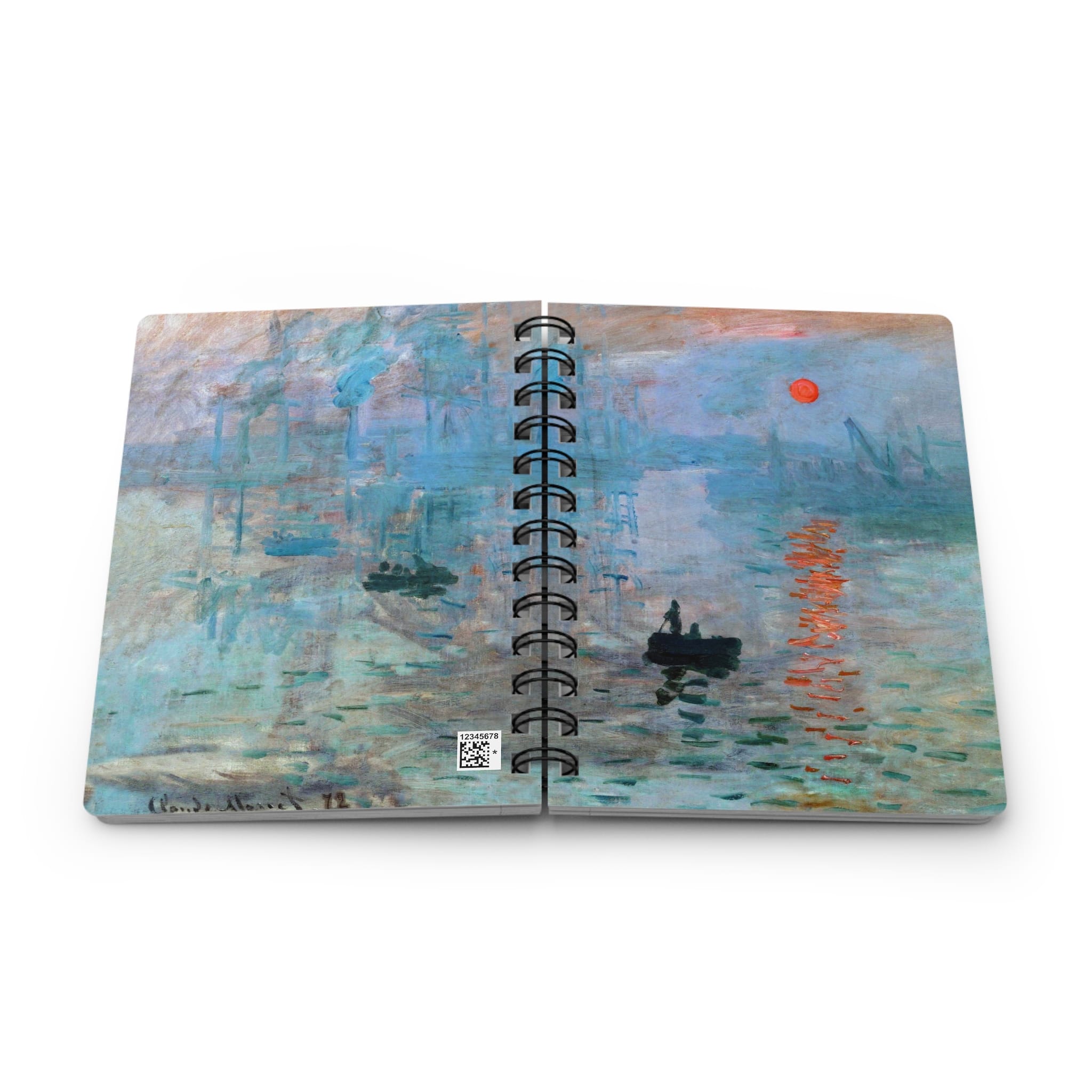 Awaken your creativity with Claude Monet’s “Sunrise” (1872). This beautifully designed spiral notebook features Monet’s iconic Impressionist masterpiece, capturing the tranquil glow of dawn over calm waters. With its soft hues and expressive brushwork, “Sunrise” brings a touch of artistic inspiration to your daily notes, sketches, or journaling. A perfect companion for art lovers, students, and dreamers alike.