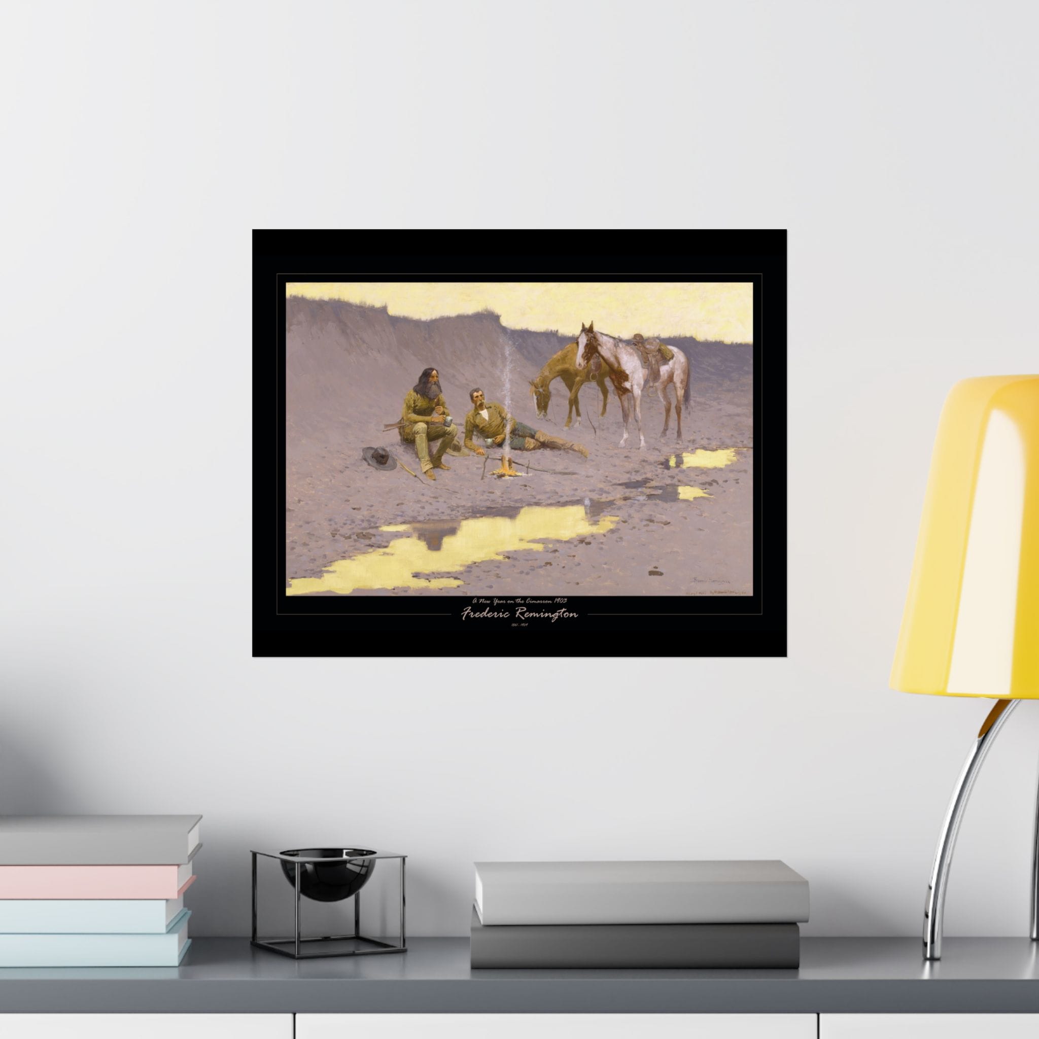 This high-quality cowboy poster captures Remington’s masterful use of light and shadow, adding warmth and depth to the cold wilderness. A powerful tribute to the resilience, solitude, and camaraderie of life on the range, this piece is perfect for anyone who appreciates vintage Western wall decor, rustic home aesthetics, or historical American art.