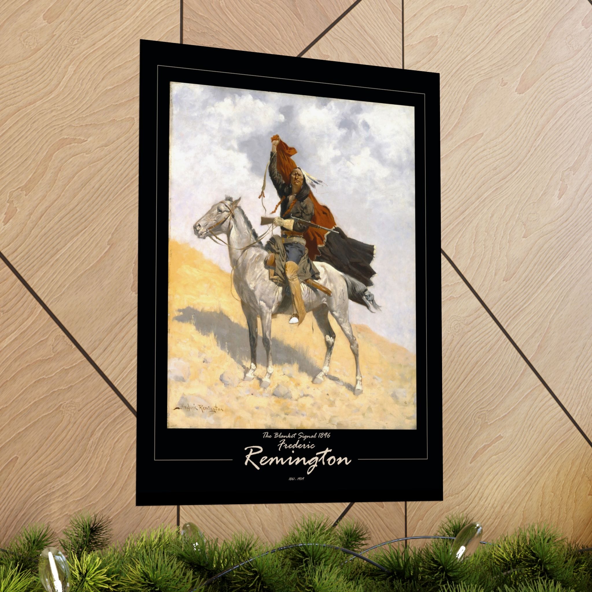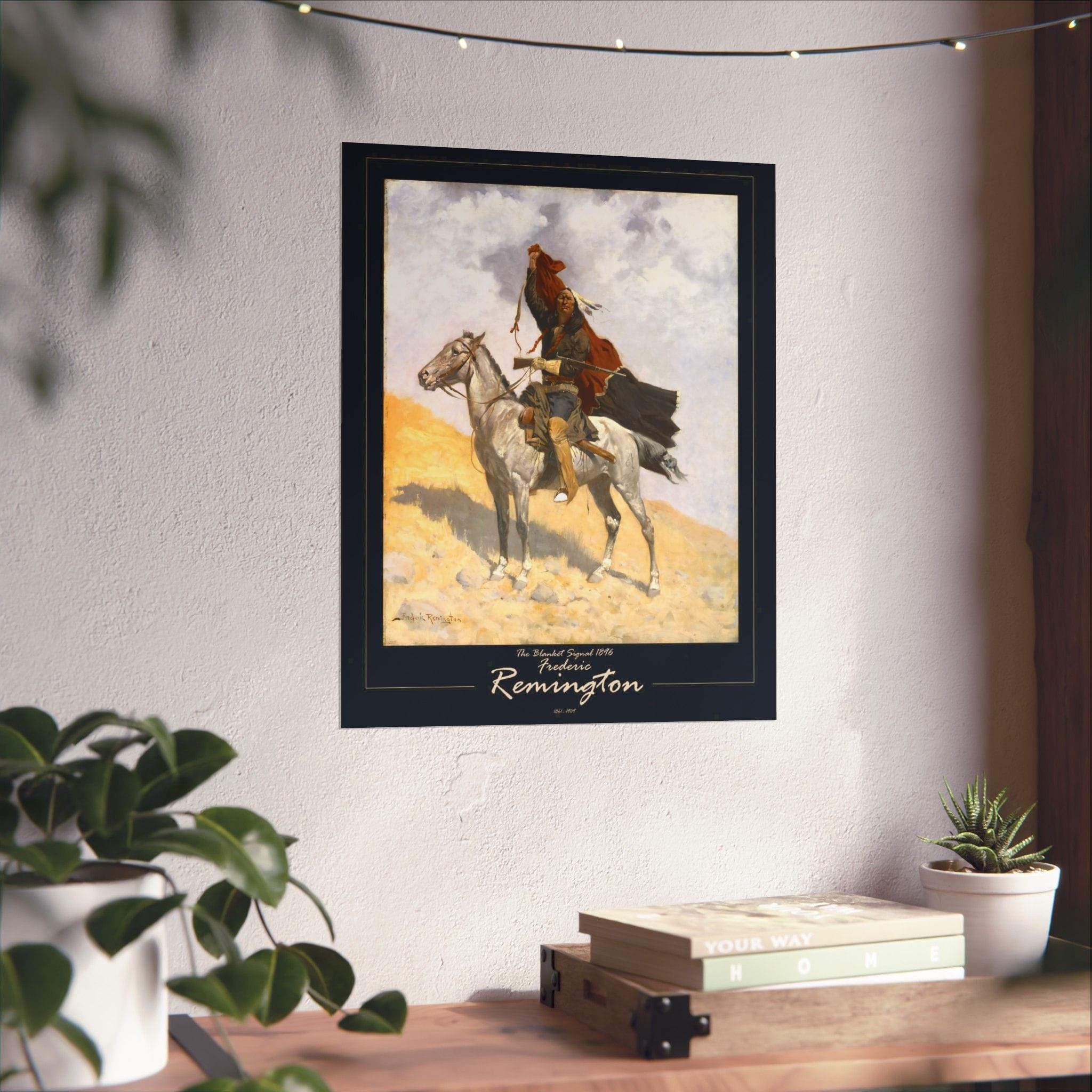 Frederic Remington’s “The Blanket Signal” – 1909 – Matte Vertical Poster on Black