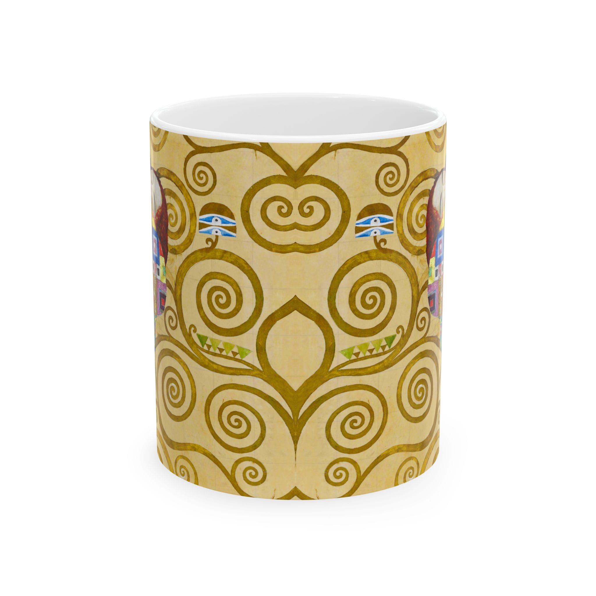 Gustav Klimt Fulfilment – Artistic Ceramic Mug – Unique Spiral Design for Coffee Lovers