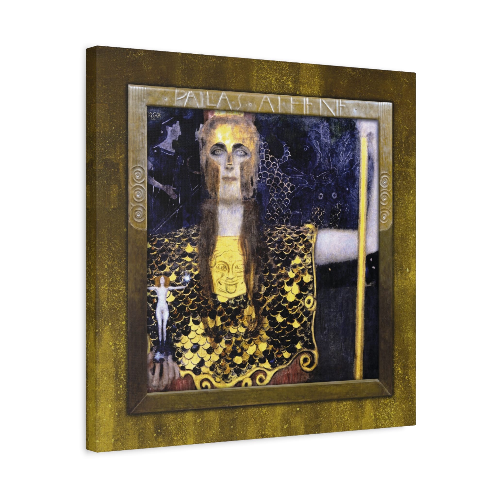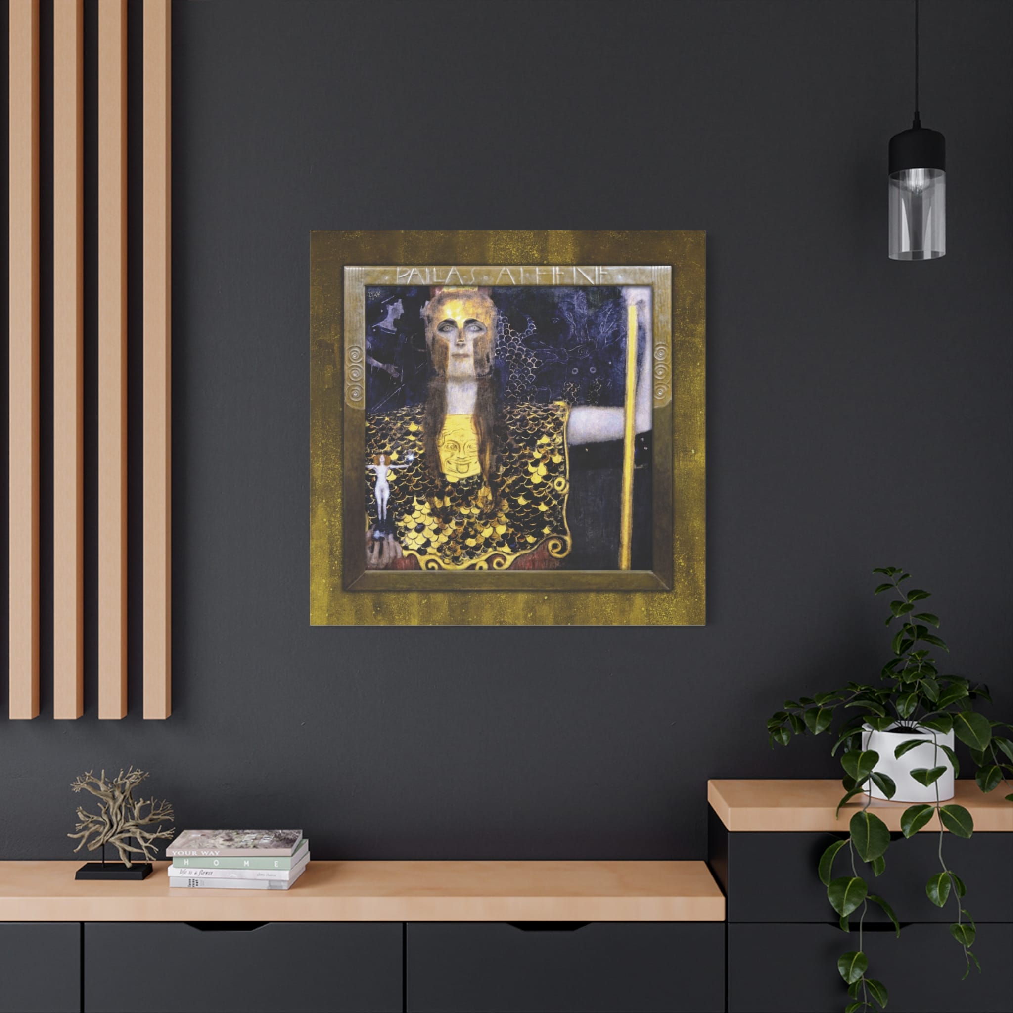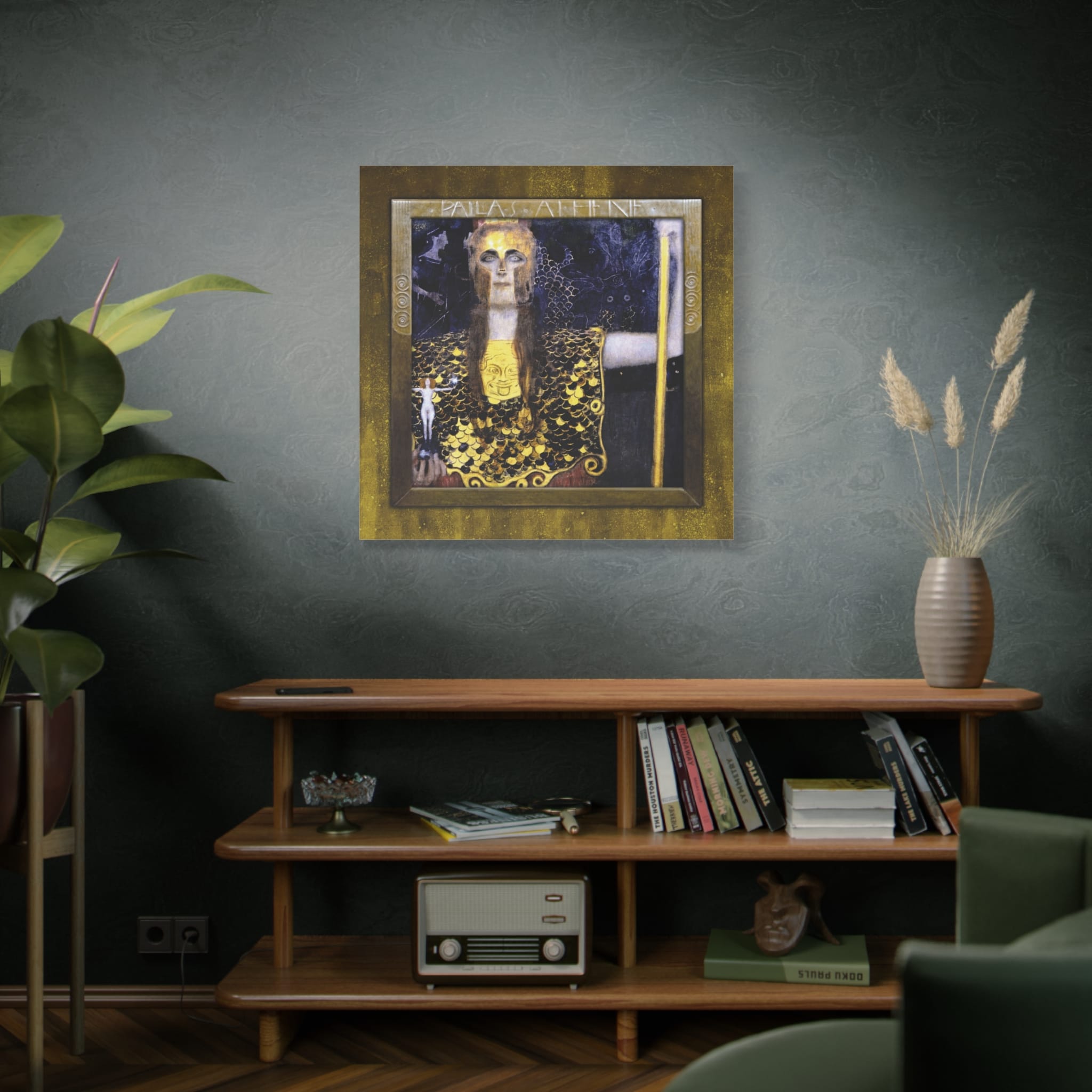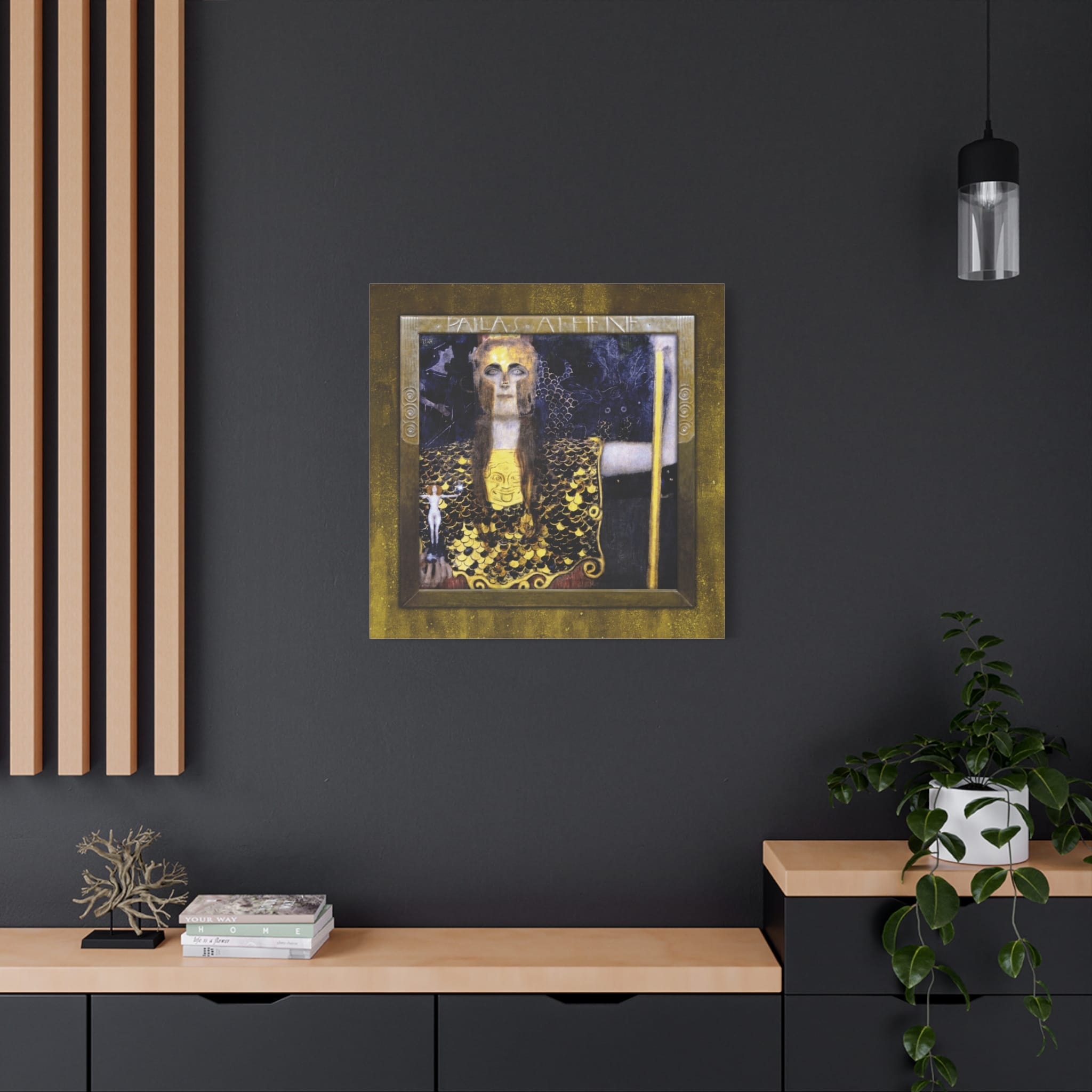 Gustav Klimt Iconic 1898 Masterpiece – Pallas Athene – A Study in Power and Divinity, Matte Canvas, Stretched, 1.25″