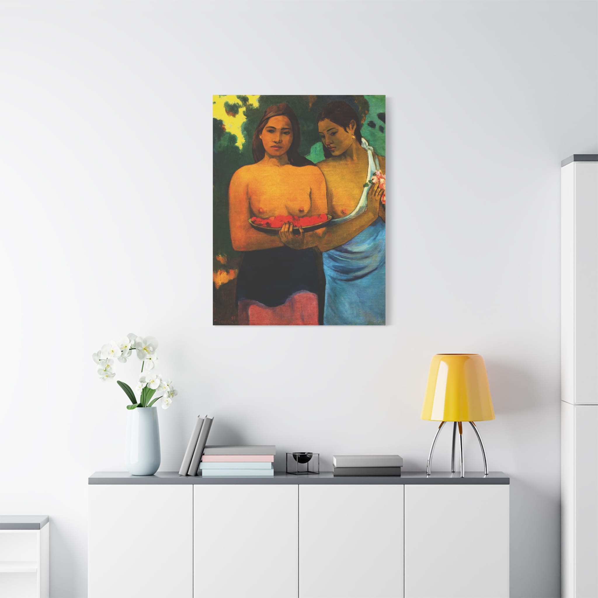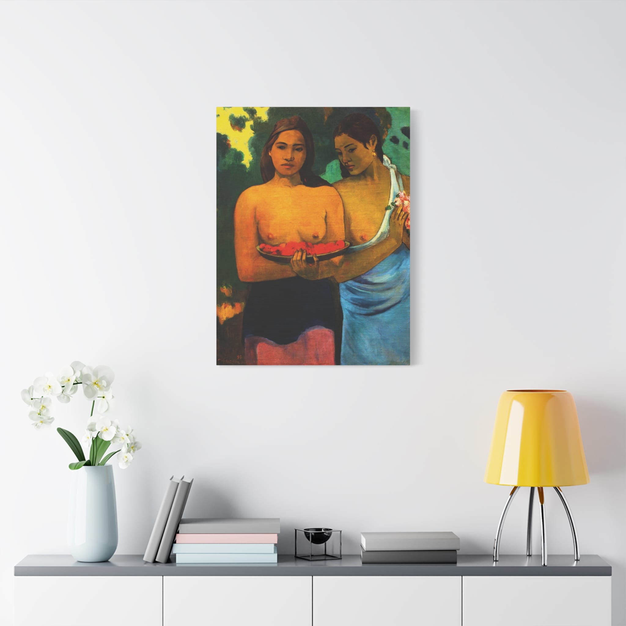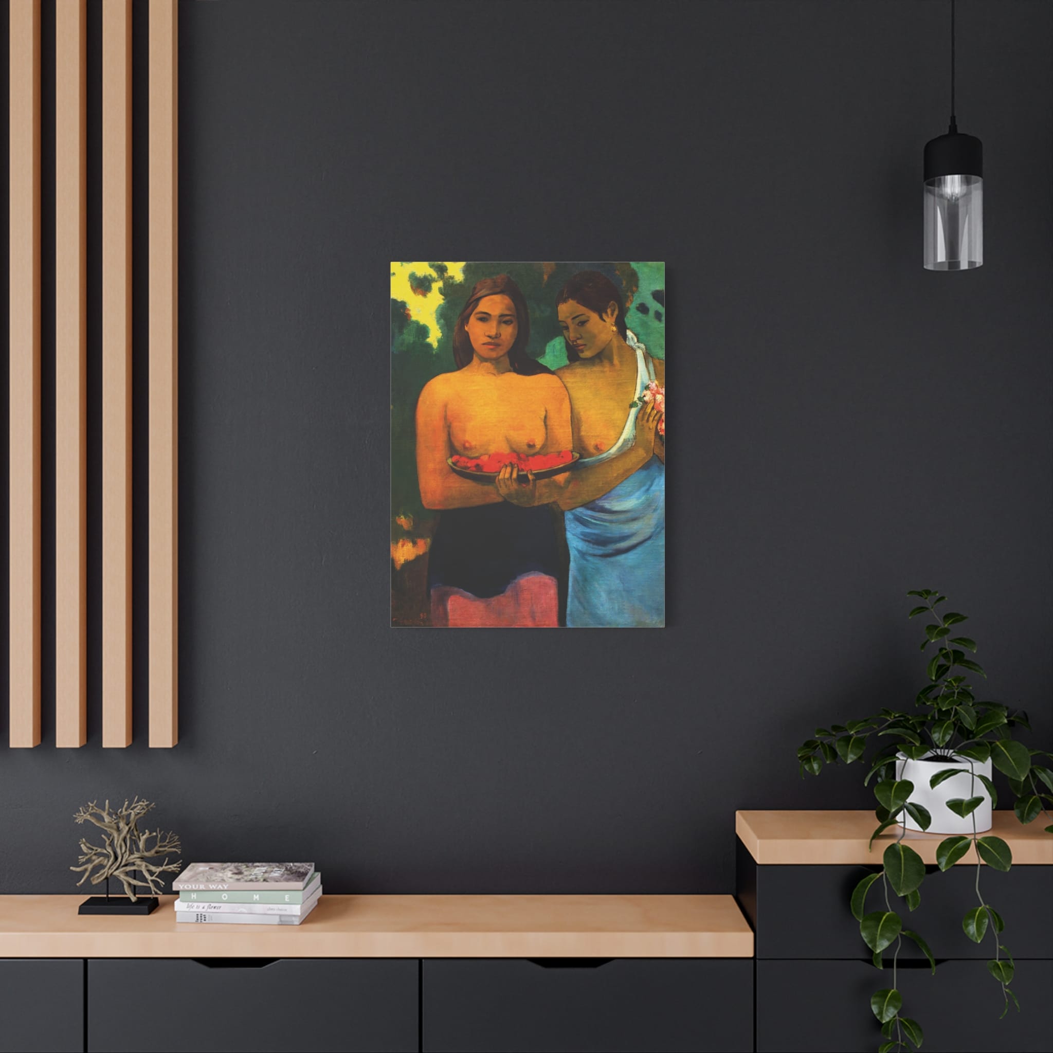 Bring the vibrant culture of Tahiti into your home with this stunning canvas print of Paul Gauguin’s “Two Tahitian Women.” Painted in 1899, this masterpiece captures the serene beauty and grace of two Tahitian women, showcasing Gauguin’s unique use of color and form. Perfect for art lovers and collectors, this high-quality canvas print adds a touch of elegance and sophistication to any space.